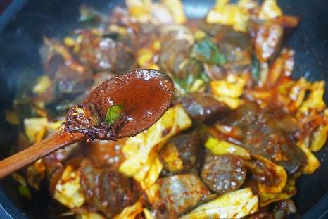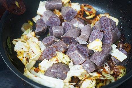 양배추가 적당히 익었다면 순대를 넣고 중불 유지하며 볶아줍니다.