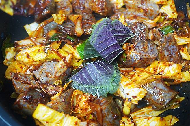 특히 순대만 볶는 게 아니라 양배추와 깻잎 등 야채가 듬뿍 들어가서