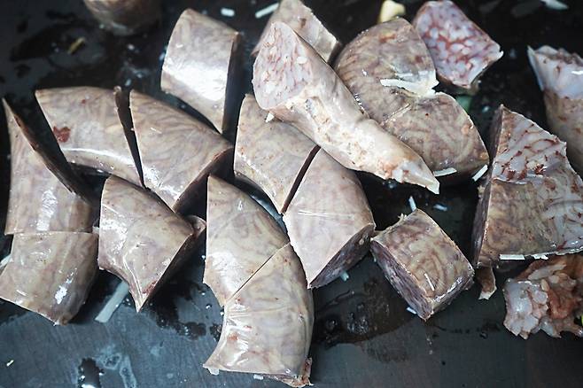너무 두껍게 썰면 양념이 덜 배어들 수 있으니 적당한 두께로 잘라주세요.