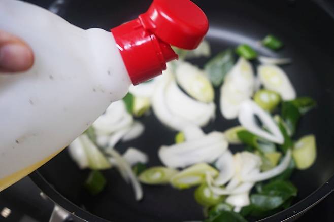 그 다음 식용유를 팬에 2~3바퀴 둘러 코팅해주고,
