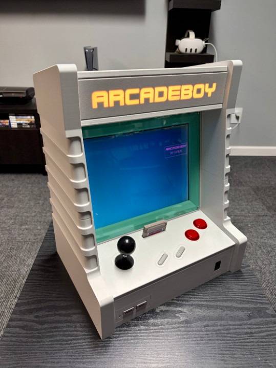 디스플레이 해상도는 480×432픽셀인데, 게임보이 원본 화면을 가로·세로 각각 세 배로 확대한 구조라서 보기 싫은 스케일링 깨짐을 피하도록 설계됐다고 합니다. 기존 게임보이의 십자키 대신 조이스틱이 장착됐고, A·B 버튼은 실제 아케이드용 촉각 스위치를 사용했어요. 여기에 3와트 스테레오 스피커, 조명이 들어오는 아케이드보이 로고, 그리고 스타트·셀렉트 버튼까지 더해져 제법 그럴듯한 아케이드 감성을 완성했습니다.