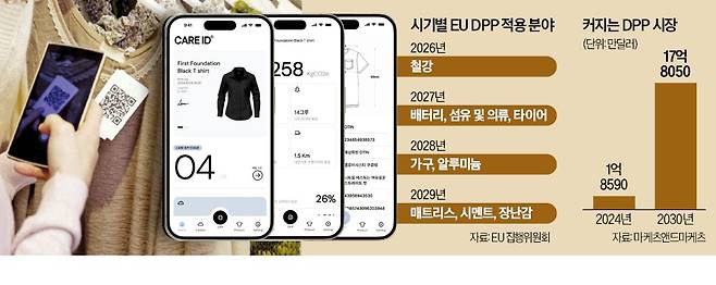 우려가 커지자 정부는 대응에 나섰다. 기후에너지환경부는 지난 5월 의류환경협의체를 발족했다. 산업통상부는 한국섬유산업연합회, 국내 DPP 솔루션 업체 윤회와 손잡고 국내 실정에 맞는 K-DPP 개발도 추진한다. 노힘찬 윤회 대표는 “DPP가 패션업계의 뉴노멀이 될 수 있는 만큼 K패션의 핵심 경쟁력으로 키워야 한다”고 말했다.