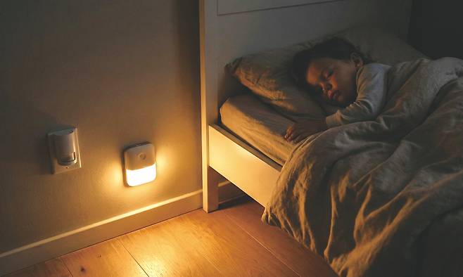 야간 자동 조명의 안전망_자다 깨서 화장실을 가는 아이에게 어두운 복도와 계단은 위험 요소이다. 스위치를 켜라고 가르치기보다, 발치에 설치된 재실 센서가 아이의 움직임을 감지해 눈부심 없는 낮은 조도의 불을 자동으로 밝혀주어야 한다.