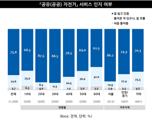 10명 중 8명, “공유(공공) 자전거 서비스 이용해본 적 있어”