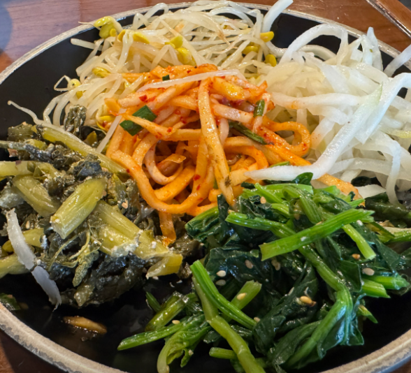 주꾸미볶음, 나물류, 보리밥이 함께 나와비빔밥처럼 비벼 먹을 수 있는 독특한 구성!매콤함 속에 은은한 불향이 입맛을 확 잡아줘요.