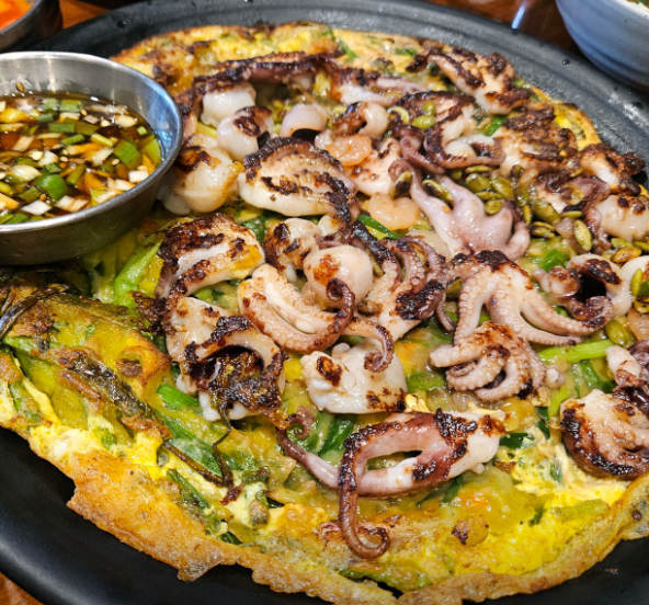 주꾸미 파전 (18,000원)크기부터 남다른 파전 위에 주꾸미가 듬뿍!고소한 호박씨 토핑까지 더해져 식감도 맛도 모두 챙겼어요.남으면 포장도 가능해서 낮술 성지로 불릴 만큼 인기!