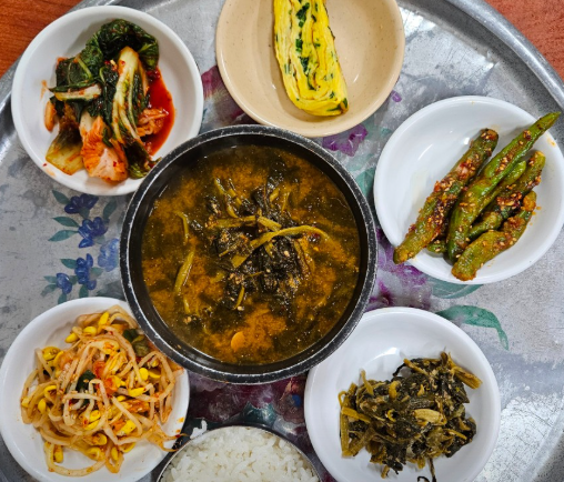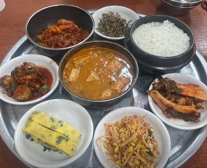 특히 제육볶음과 청국장이 함께 나오는 세트 메뉴는 푸짐한 양과 집밥 같은 맛으로 인기입니다. 밑반찬 역시 계절에 맞춰 정갈하게 준비되어 있어 반찬 하나하나가 메인이라 할 만큼 정성이 깃들어 있습니다.
