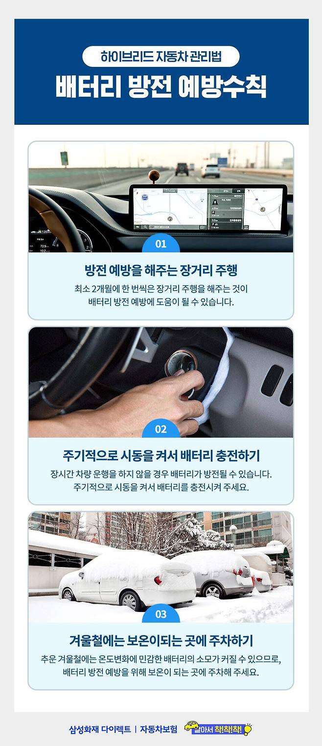 소모품인 배터리의 특성상 주행기간이 길수록 점점 노후화될 수밖에 없는데요. 때문에 하이브리드 차량 역시 주기적으로 배터리를 점검해 방전에 대비해야 합니다. 특히 온도가 떨어지는 겨울철에는 더 많은 관심과 주의를 기울일 필요가 있습니다.