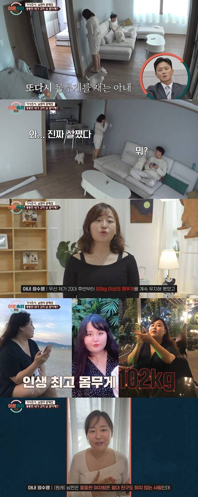 남편이 아내에게 "가슴이 4개야?", "가슴 살 접힌다", "감히 네가 날 좋아해?" 등과 같은 말을 이어가 MC들의 화를 불렀다. 아내는 과거 100kg에 육박했지만, 45kg를 감량해 52kg를 유지 중이다.