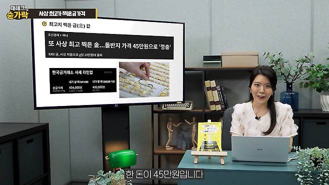 재테크 기초 강의 ‘재테크 숟가락-금 투자법’이 공개됐다. 재테크 숟가락은 초보 투자자 눈높이에 맞춰 경제·재테크 기초 지식을 ‘숟가락으로 떠먹여 주듯’ 알기 쉽게 설명하고 실제 투자까지 함께 해보는 시간이다. 진행을 맡은 김나영 양정중 교사는 2009년부터 교내 경제 동아리 ‘실험경제반’을 운영하고 있다.