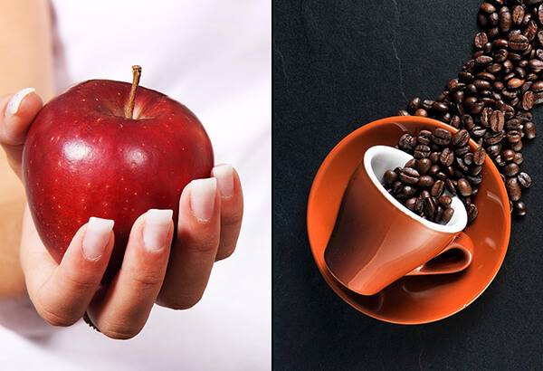 러닝 전에 먹기 좋은 과일로 사과도 빼놓을 수 없다. 식이섬유를 섭취할 수 있는 과일이기에 포만감을 유지할 수 있으며, 무엇보다 맛있다. 미리 조각을 내서 간식처럼 사과를 먹는 게 좋다. 적당한 카페인도 러닝 시에 집중력과 지구력을 높일 수 있기에, 커피를 마시는 것도 좋은 선택이 된다. 시럽을 더해서 당분을 함께 섭취하는 것도 추천할 만하다. 다만 공복에 커피는 위에 자극을 줄 수 있으므로 피해야 한다.