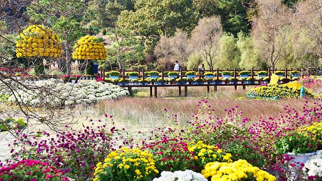 축제의 테마는 “꽃과 바다, 그리고 사람”. 아름다운 국화 조형물과 함께 연못, 연꽃 정원이 어우러진 풍경은 단풍이 아닌 ‘꽃’으로 가을을 기억하게 만드는 특별한 장면을 선사한다.