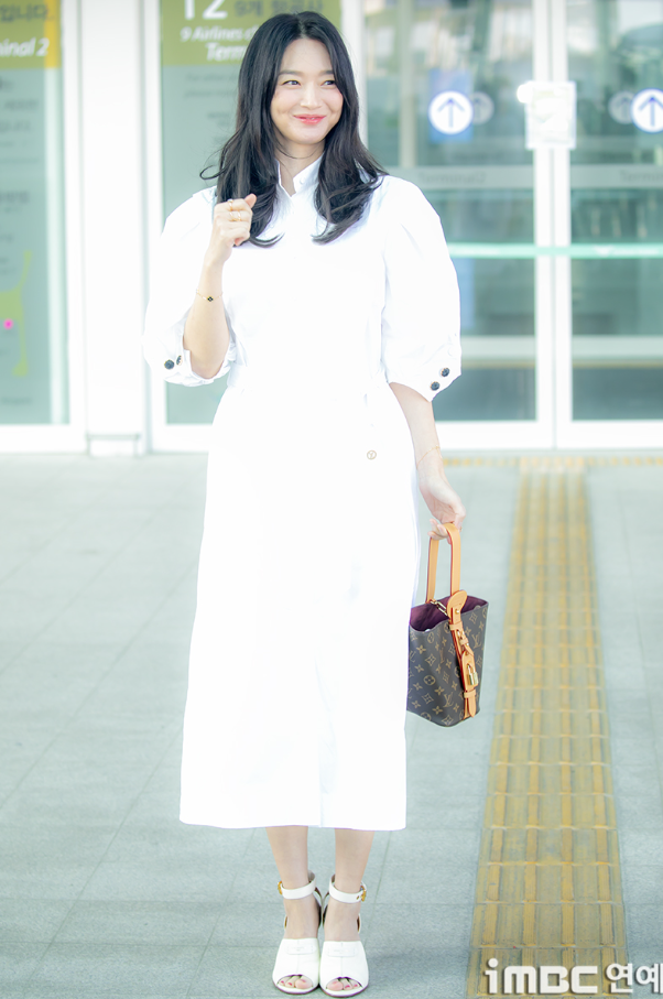 신민아는 이날 화이트 원피스를 착용하여 여름의 여신 같은 모습으로 레전드 공항패션 또 찍었더라고요🙊