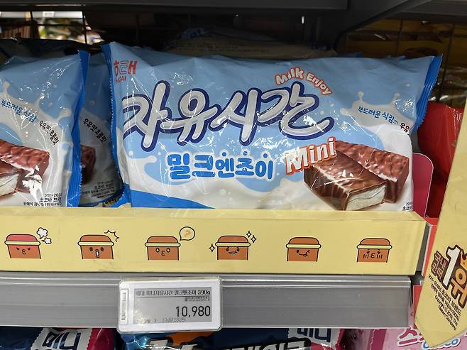 자유시간 밀크엔조이 미니는 부드러운 밀크 크림이 들어간 미니 초코바로, 달콤한 맛과 간편한 휴대성으로 간식으로 추천해요.