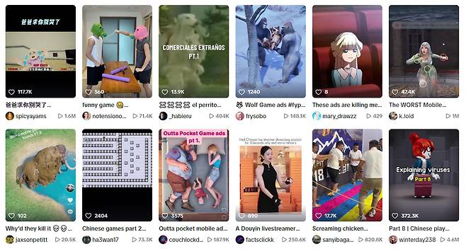 이들은 기본적으로 게임을 홍보하기 위한 광고이긴 하지만요. 조금씩 형태가 변형돼 ‘이게 콘텐츠인지, 광고 인지’ 구별하기 어려운 지점에 이르고 있어요. 비슷한 방식의 콘텐츠를 대량으로 뿌리다 보니, 점차 알고리즘이 중국화되고 있다는 느낌을 지울 수가 없더라고요.