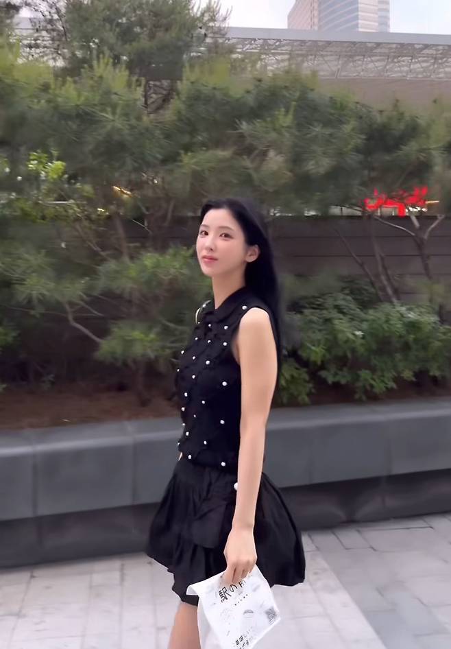 배우 강석우의 딸이자 배우 강다은이 전체적으로 블랙 톤의 민소매 셋업룩을 선보이며 단숨에 분위기를 압도했습니다.