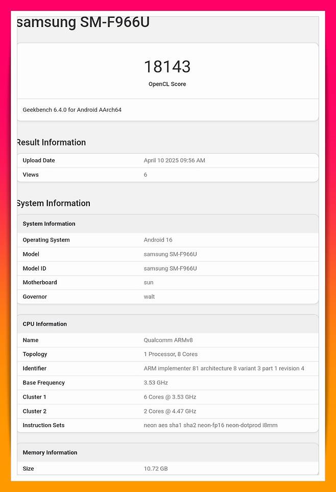갤럭시 Z 폴드 7로 추정되는 모델(SM-F966U)이 등장했습니다.