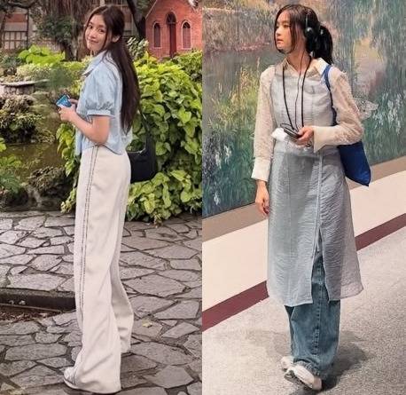 심플한 이어폰과 에코백 같은 소품 선택으로 실용성과 스타일을 모두 잡았으며, 전체적으로 자연스러움과 예술적 감성이 조화를 이루는 고보결만의 독특한 데일리룩을 선보였습니다.