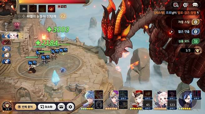 반복 전투 스킬 예약 순서와 최소 딜견적은?유이의 부활, 회복 1, 2순위! 레이첼의 디버프도 이용하자 세인의 귀신 베기로 3만 이상의 딜을 낼 수 있다면, 파멸의 눈동자 10단계는 클리어가 가능하다. 기본적으로 스킬 우선순위 1순위와 2순위는 모두 유이의 스킬이다. 아군 부활 스킬인 '축복의 선율'을 1순위로 두는 이유는 해당 스킬을 최우선으로 사용하되, 사망한 아군이 없을 경우엔 나머지 스킬을 사용하는 메커니즘을 지녔기 때문이다.