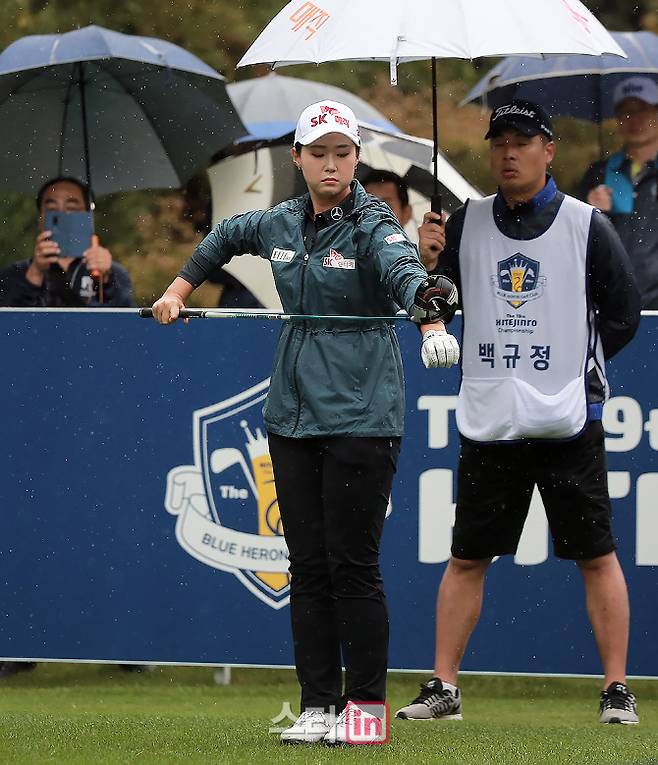 [이데일리 골프in 여주(경기)=박태성기자] 5일 경기도 여주에 위치한 블루헤런 골프클럽(파72/6,736야드 본선6,660야드)에서 2018시즌 네 번째 메이저대회인 '제19회 하이트진로 챔피언십'(총상금 8억 원, 우승상금 1억 6천만 원) 2라운드가 열린가운데,백규정(23.SK네트웍스)이 1번홀 티샷을 준비하고 있다.