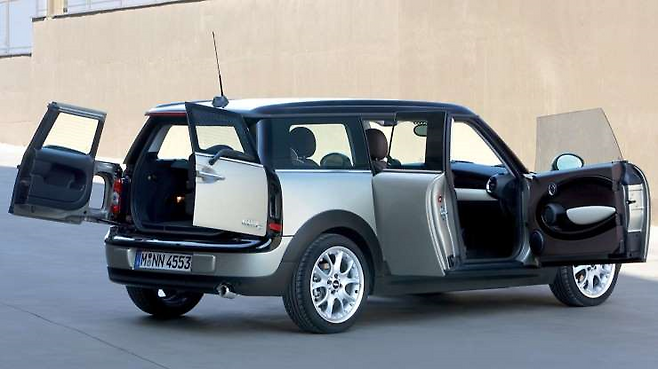 오늘날 미니에 기반을 둔 첫 번째 클럽맨은 다양하고 독특한 아이디어에 도전하는 브랜드의 예시를 보여줬다. 많은 사람들이 기억하다시피 조앤 쿠퍼 워크 버전도 있었다. 차량의 오른쪽에 독특한 방식의 문을 볼 수 있다.