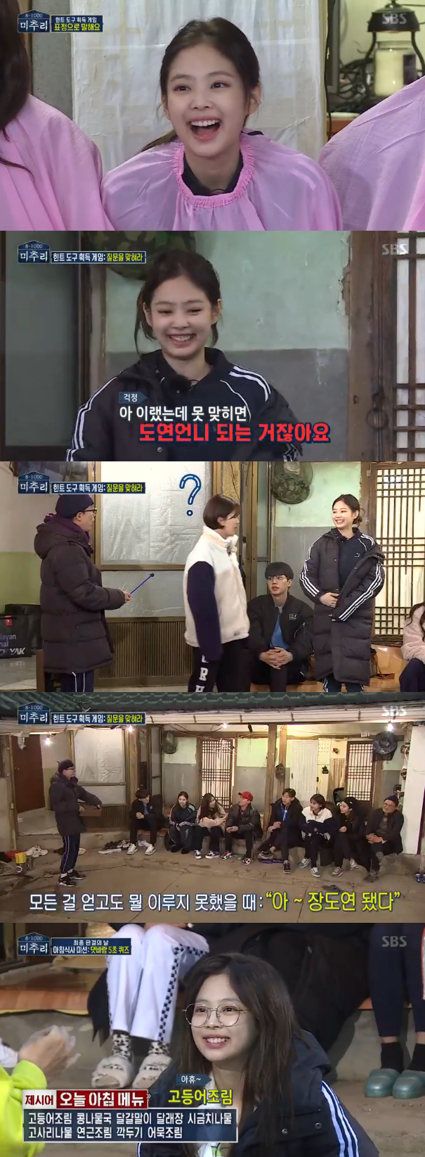 '질문을 맞혀라' 게임이 이어졌다. 제니는 두 개의 퀴즈를 연속으로 맞히는 실력을 선보여 모두를 놀라게 했다. 제니는 기뻐하다가 "이러고 못 맞히면 장도연 언니 되는 것 아니냐"라고 말해 촬영장을 웃음바다로 만들었다. 앞서 여러 힌트를 얻고도 제대로 추리해내지 못했던 장도연을 언급한 것.