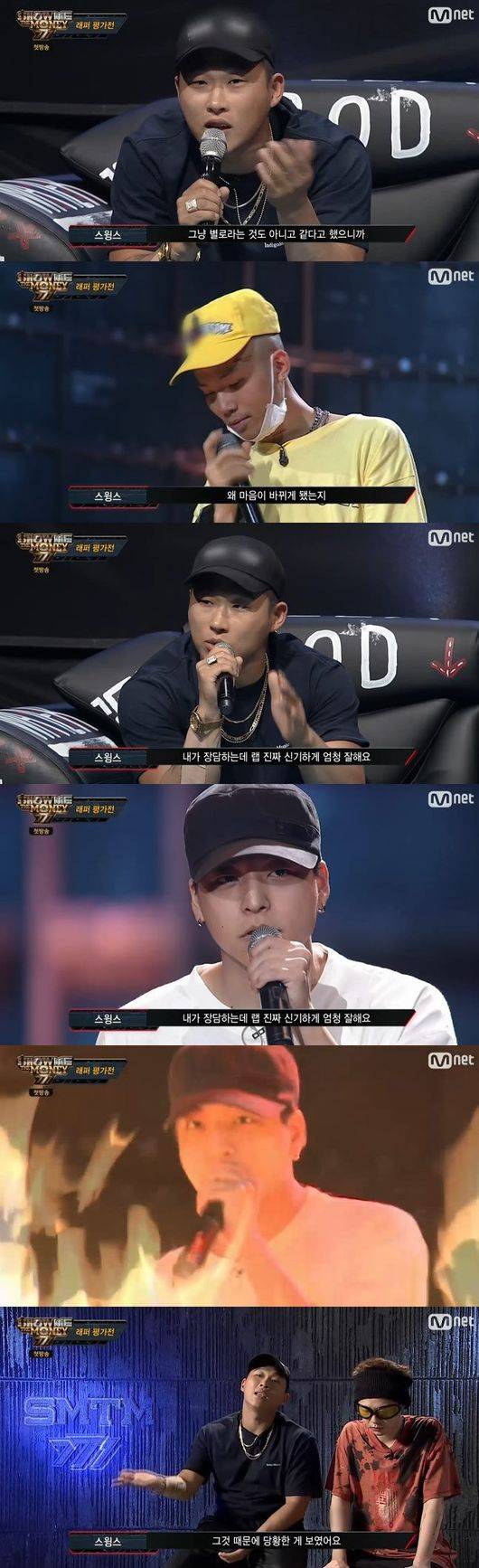 먼저 과거 '쇼미더머니'에 출연했던 래퍼들을 비판했던 루피는 스윙스에게서 "마음 바뀌게 된 계기가 궁금하다. 저는 제일 먼저 '쇼미더머니'에 나왔던 참가자 중 한 명이다. 욕 먹을 때 사실 기분이 안 좋았다. 직접 마주친 입장에서 물어보고 싶었다. 구린 게 어떻게 해서 멋있어진 건지 궁금하다"는 질문을 받았고 "한국에 들어가서 저만의 길을 가려고 노력을 해봤고 많은 시행착오와 고민 후에 이런 결심을 내리게 됐다. 사실 굉장히 긴장된다. 긴장감을 이겨내고 원하는 것을 가져가는 참가자들에게 리스펙이 생기는 것 같다"고 답했다.