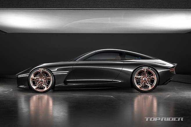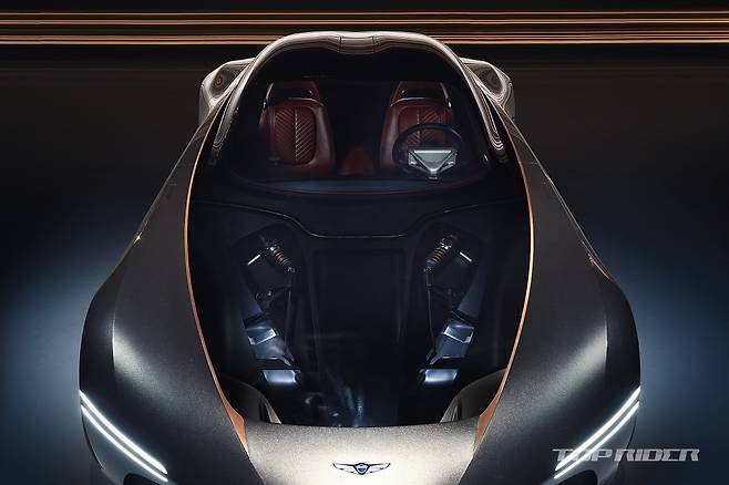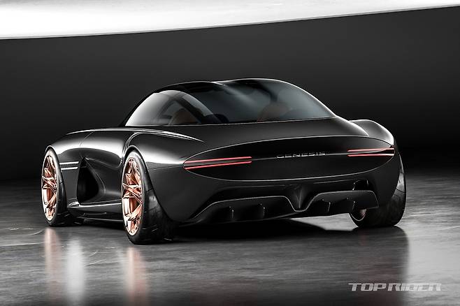 에센시아에는 전통적인 스포츠카의 비율인 롱 보닛 숏 데크 스타일이 적용됐다. 역동적인 비율을 바탕으로 투명한 보닛과 탄소섬유 차체, 노출된 푸시로드 서스펜션 등 기존 제네시스 브랜드에서 보여주지 않았던 새로운 스포츠카 설계를 담아냈다.