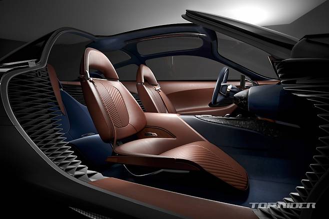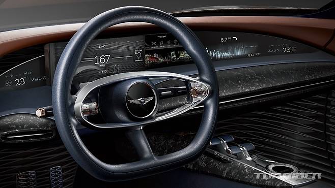 에센시아에는 버터플라이 도어가 적용됐다. B-필러에 장착된 센서를 통해 지문인식 및 얼굴인식이 가능하다. 제네시스 G-매트릭스 철학에서 가져온 마이다스 메탈 쿠퍼 디테일은 휠을 비롯해 전면 그릴, 인테리어 등 다양한 부분에 적용됐다.