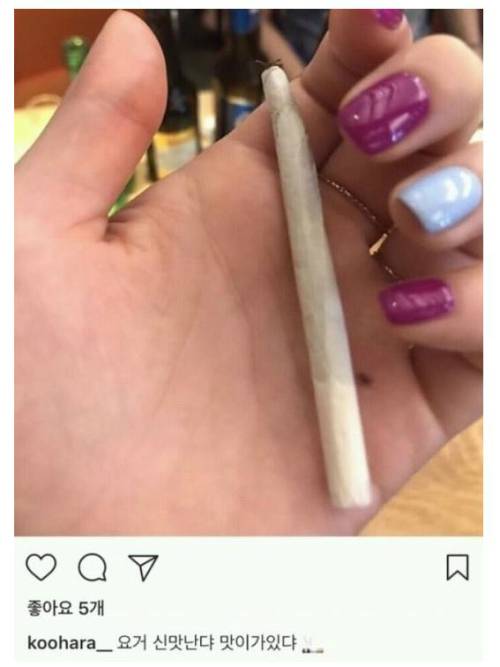지난해 구하라는 자신의 인스타그램에 "이거 신맛 난다. 맛있다"라며 담배로 보이는 하얗고 긴 종이에 쌓인 물건을 손 위에 올려둔 사진을 게재했다.