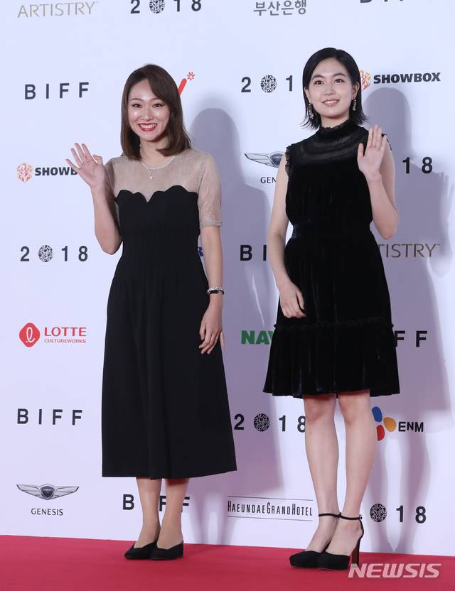 【부산=뉴시스】조수정 기자 = 영화 '국화와 단두대(The Chrisnathemum and the Guillotine)' 배우 키류 마이, 칸 하나에(왼쪽)가 4일 오후 부산 해운대구 우동 영화의전당에서 열린 제23회 부산국제영화제(BIFF) 개막식에 참석하기 위해 레드카펫을 밟고 있다. 2018.10.04. chocrystal@newsis.com