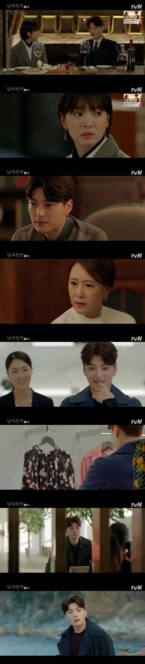 정우석이 정략결혼한 차수현을 사랑해서 놔줬고, 아직 사랑하고 있음이 드러나며 반전을 선사한 대목. 이후 이날 방송말미 정우석은 차수현에게 선물할 옷을 사서 차수현이 출장 간 속초 호텔까지 찾아갔다가 차수현 김진혁과 스쳐 지나는 모습으로 긴장감을 조성했다. 정우석의 순애보가 차수현 김진혁에게 또 어떤 영향을 미칠지 흥미를 더했다. (사진=tvN ‘남자친구’ 캡처)