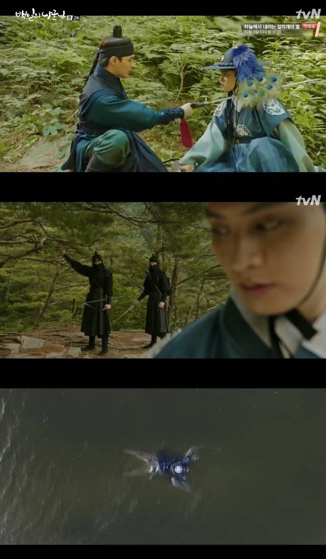 이어 율과 동주가 옷을 바꿔 입고 도망쳤다. 동주는 율의 옷을 입은 채로 무연의 활을 맞고 절벽 아래로 떨어졌다. 그 사이 율은 동주의 옷을 입고 쓰러졌다. 동주가 율을 살리고 죽음을 맞은 가운데 율은 기억상실 상태로 연씨(정해균 분)에게 구해져 원득이 됐다.