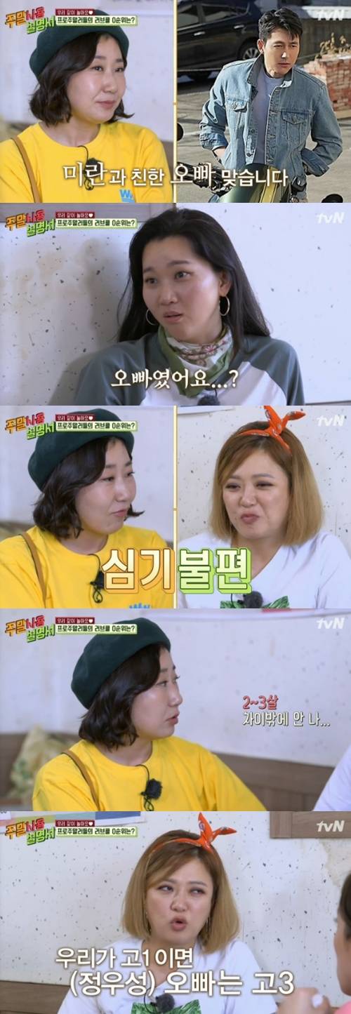 이때 김숙은 동갑내기 친구인 라미란에게 "정우성 오빠한테 연락해봐"라고 말했고, 장윤주는 "(정우성이) 오빠였어요?"라고 말하며 놀라워했다.