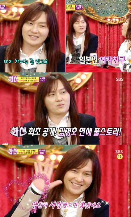 당시 방송에서 김경호는 "피부과 원장님의 소개로 일본인 여자친구를 만났다"며 "손도 못 잡아보고 식사하고 영화 본 게 다였다. 외국인이다 보니 신중할 수밖에 없었다. 상처를 주면 안 될 거라는 생각에 더 신중했다"고 했다.