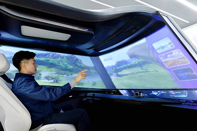 자율주행 모드에서 영상과 차량 주변 상황은 전면 유리창에 펼쳐진다. 이른바 유리창(윈드쉴드) 디스플레이다. 유리창 디스플레이는 AVN(오디오·비디오·네비게이션)이나 클러스터(계기판) 다음 단계의 차세대 디스플레이로 부상할 전망이다.
