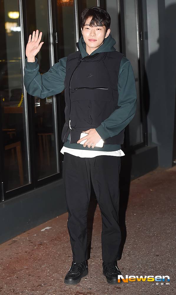 이날 배우 윤종석이 종방연에 앞서 손 인사를 하고 있다.