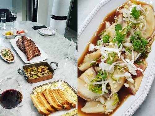 이시영은 감바스와 홍합찜, 찜닭, 파스타가 먹음직스럽게 담긴 사진과 함께 "오랜만에 (소유진) 언니네 집. 백쌤(백종원)이 장도 봐오시고 음식까지"라는 설명을 덧붙였다.