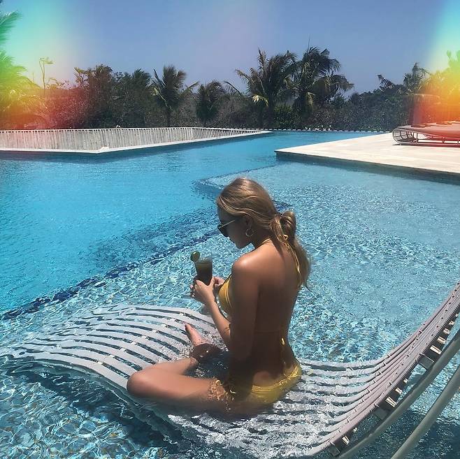 사진 속 LE는 수영장에서 여가 시간을 보내고 있다. 군살 없는 비키니 몸매가 그대로 노출됐다. 끈으로 된 아슬아슬한 비키니가 LE의 섹시함을 배가 시킨다.