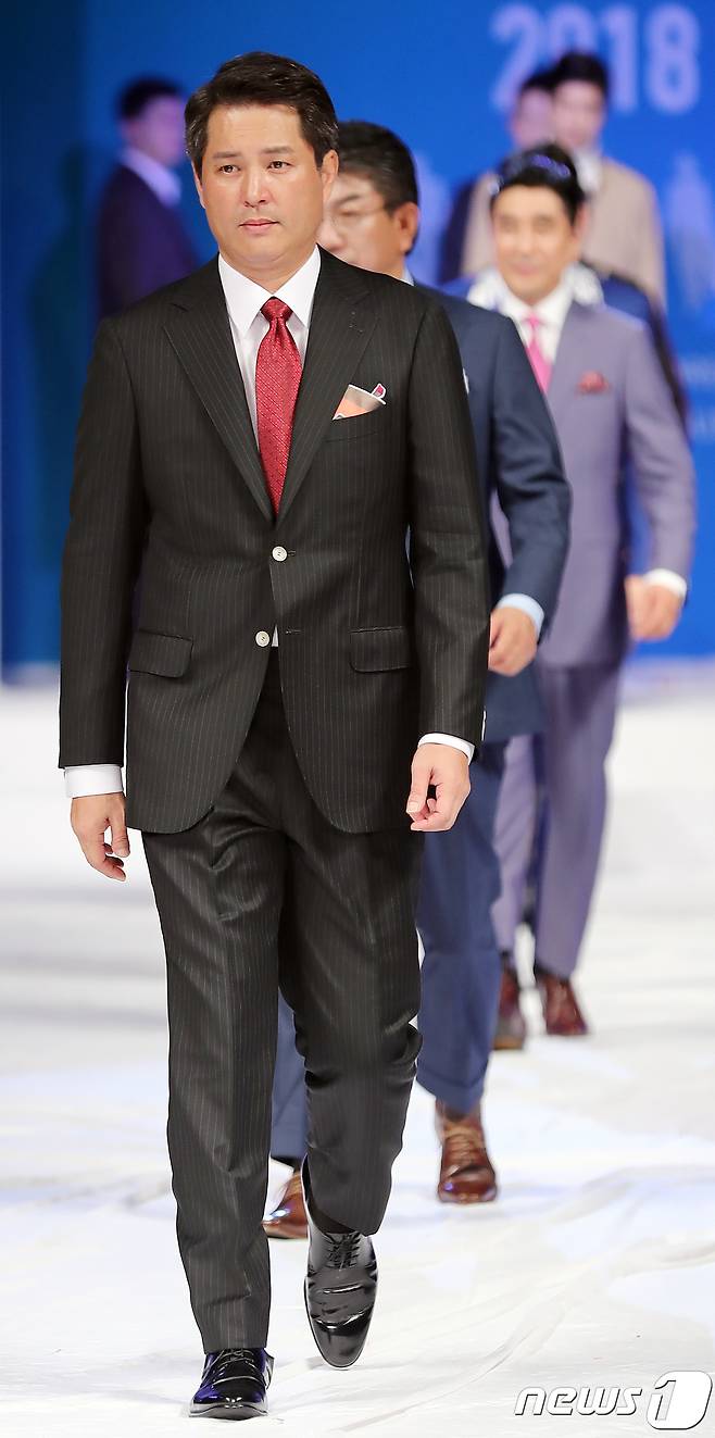 (대구=뉴스1) 공정식 기자 = 탤런트 이종원(맨 앞)이 31일 대구 북구 산격동 호텔인터불고 엑스코에서 열린 ‘제27회 아시아 주문양복연맹 대구총회’ 개막 축하 패션쇼에서 아시아 대표 디자이너가 만든 다양한 정장 작품을 선보이고 있다.