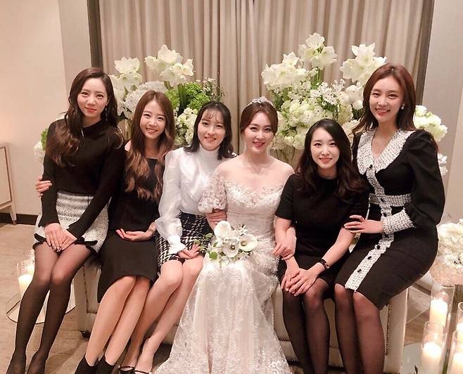 신부 대기실에서 순백의 드레스를 입은 신아영의 아름다운 모습이 이목을 단숨에 사로잡는다. 함께 사진을 찍은 아나운서 군단 정순주, 배지현, 장유례, 김선신, 박지영 역시 미모를 자랑하고 있다.