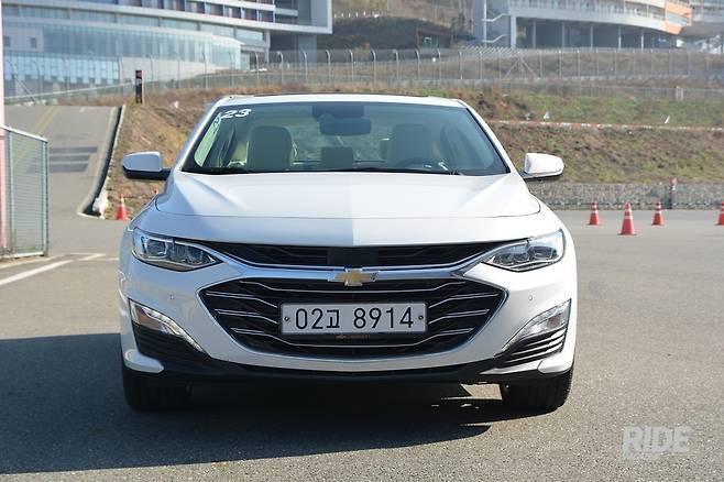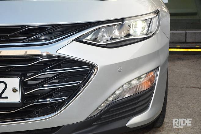 더 뉴 말리부에는 스파크에 먼저 적용된 바 있는 패밀리룩이 입혀졌다. 중앙부의 크롬장식은 새로 디자인 된 LED 전조등까지 이어지며 눈꺼풀이 날 선 느낌을 준다. 위쪽 그릴과 아래쪽 공기흡입구는 더 커져서 시원시원한 인상을 만든다. 그릴에도 얇게 크롬장식이 가로로 들어가서 가득찬 느낌을 준다. 하단부엔 방향지시등과 주간주행등이 적용되었다. 쉐보레 엠블럼 위쪽에는 레이더가 자리잡았다.