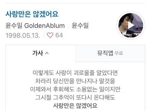 그 사람도 분명 연락을 할까 말까 고민 중일 거다. 그러니 뭔가 의미심장한 글을 프사로 올려보라고 내 얕은 지식으로 조언했다. 구구절절 사랑과 이별의 통찰이 기가 막힌 뜻밖의 대중가요가 있었으니 '사랑만은 않겠어요'.