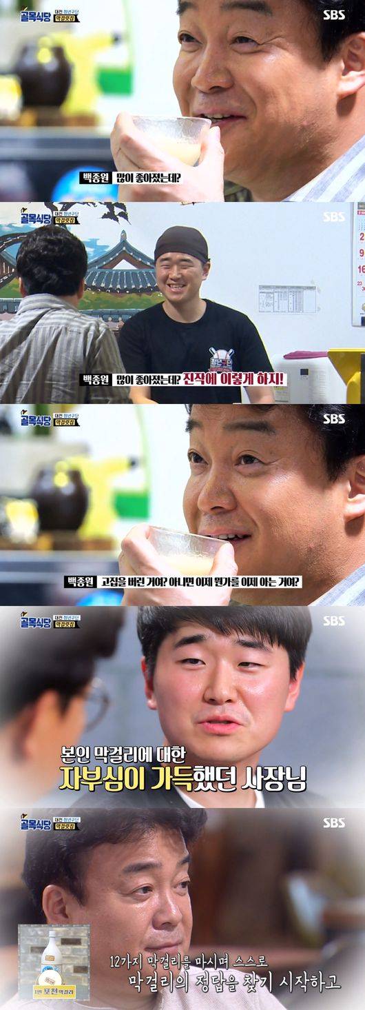 이날 방송에서 백종원은 막걸리집 사장의 막걸리를 맛보고 "많이 좋아졌는데? 진작 이렇게 하지"라며 "고집을 버린 거야? 뭔가 알게 된 거야?"라고 했다.