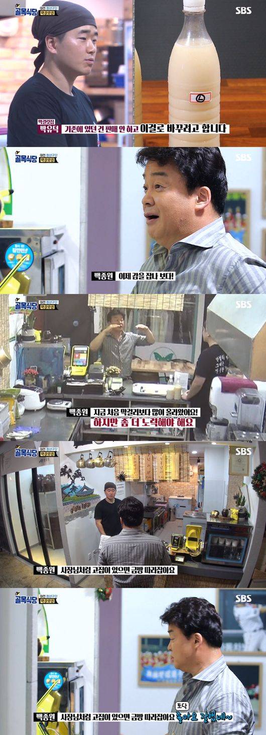 이후 결국 막걸리집 사장이 변화의 모습을 보였다. 이날 방송에서 백종원은 막걸리집 사장의 막걸리를 맛보고 “많이 좋아졌는데? 진작 이렇게 하지”라며 “고집을 버린 거야? 뭔가 알게 된 거야?”라고 했다.
