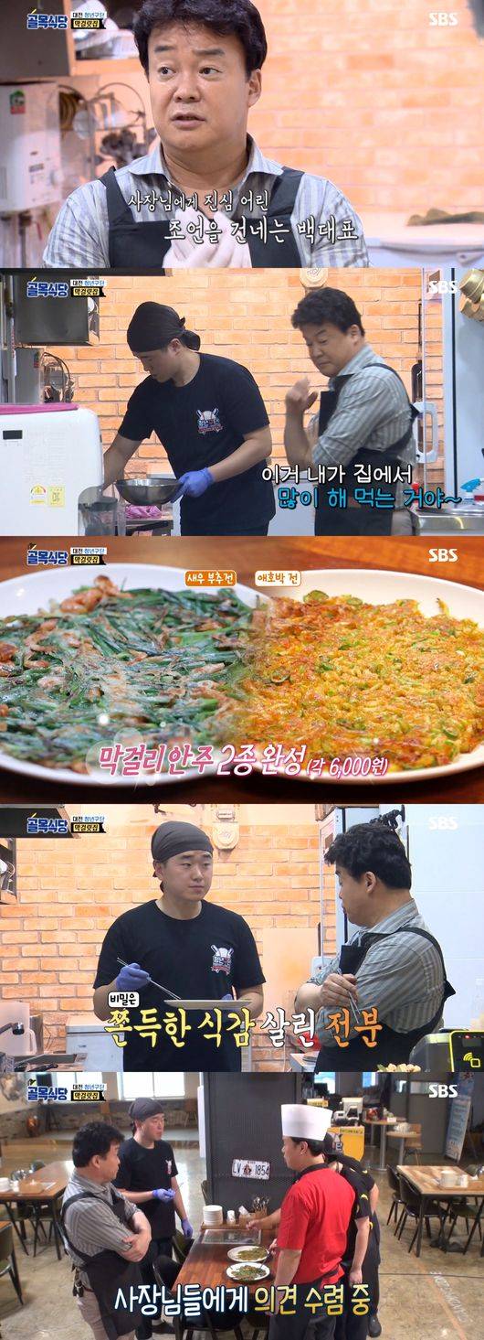 백종원은 “지금 처음 막걸리보다 많이 올라왔다. 하지만 좀 더 노력을 해야 한다. 그리고 나중에 뛰어넘으면 된다. 나름대로 지역에서 인기 있는 막걸리를 갖다 놓고 반응도 보고 그게 공부다. 지금 막걸리 장인이 아니잖아. 장인이 되어가려고 준비하는 거잖아. 사장님 고집이 있으니까 잘 될 거야. 좋아 잘했네”라고 칭찬하며 막걸리와 함께 먹을 수 있는 호박전과 부추전 만드는 법을 알려주기까지 했다.