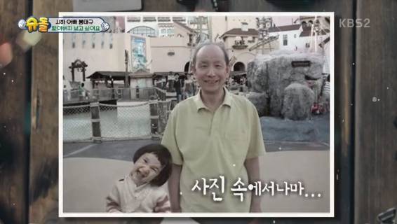 또 봉태규 시하의 사진에 아버지의 모습을 합성한 것을 담은 액자를 묘 앞에 놓았다. 봉태규는 "아버지가 시하를 보셨으면 정말 좋아하셨을 것"이라며 "이렇게라도 같이 있는 모습 남겨드리고 싶었다"고 말해 시청자의 코끝을 찡하게 만들었다.