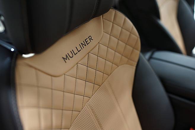 고객의 눈높이에 맞는 서비스를 제공하는 뮬리너를 지속적으로 느낄 수 있도록 시트 숄더 부분에는 ‘Mulliner’ 글자가 수놓아져 있으며, 동일한 문구가 화이트 색상의 일루미네이트 도어 플레이트에 새겨져 있다.