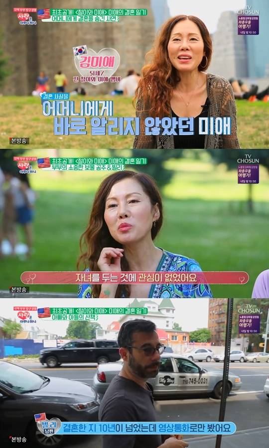 8월 4일 방송된 TV조선 ‘사랑은 아무나 하나’에서는 김미애의 국제결혼 생활이 담겼다. 김미애는 이날 미국 뉴욕에서의 결혼생활을 전면 공개했다.