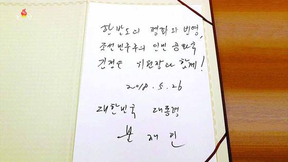 2차 회담 때 문재인 대통령이 작성한 방명록의 내용. [사진 청와대]